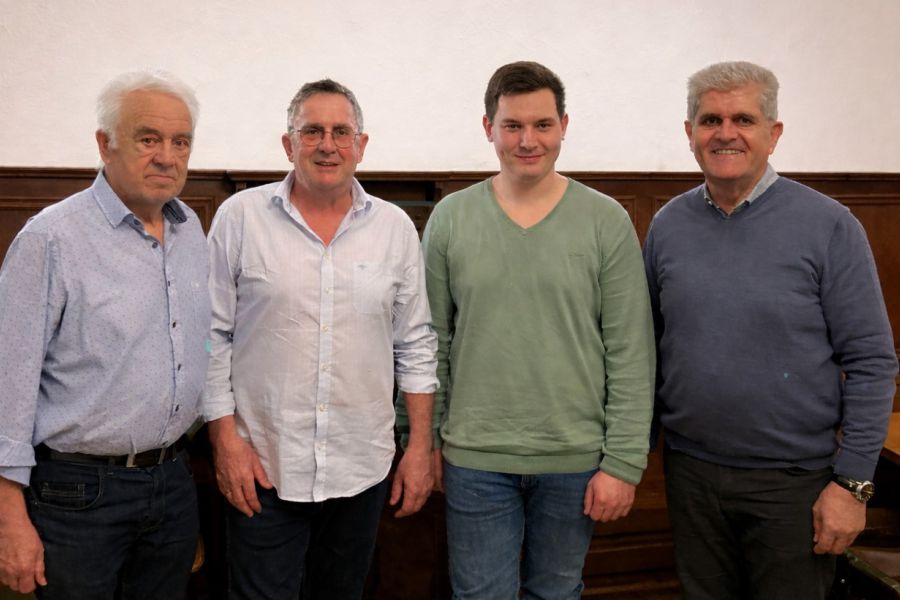Herbert Graf (2.von li.) war 44 Jahre für die Wasserversorgung zuständig. Seine Verdienste würdigte Geschäftsführer Karl Eibl (re.). Zusammen mit Vorgänger Josef Moser (li.) und Nachfolger Florian Kellnberger stehen sie für drei Generationen Wasserversorgung in Vilshofen.